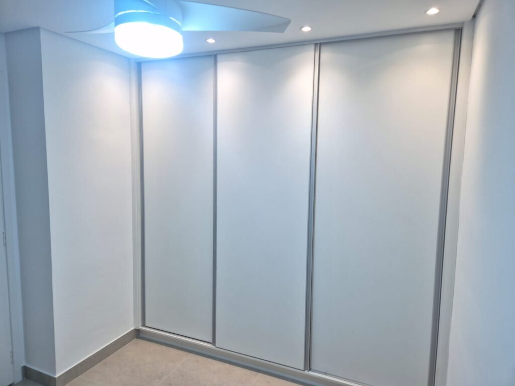 Armários no quarto, suíte, banheiros, sala e cozinha.